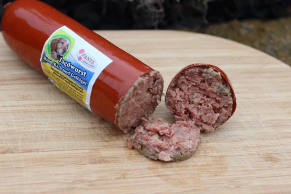 Die Jagdwurst ist für alle ausgewachsenen Hunde super geeignet. Hergestellt wird die Wurst in Deutschland nach Lebensmittelstandard. Selbstverständlich haben wir auch hier auf künstliche Aroma- und Farbstoffe verzichtet und auf eine gluten- und getreidefreie Rezeptur geachtet.